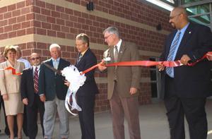 Commissioner Elliott cuts the ribbon at the dedication ceremony for the new Franklin County Jail, a collaborative effort of the county, the community, and the judicial system.